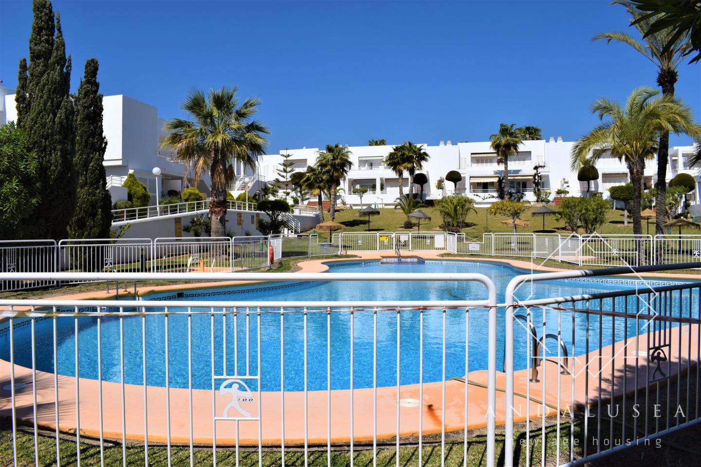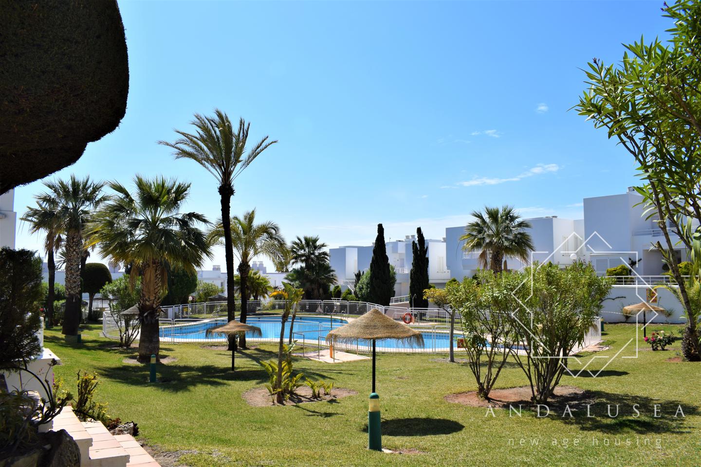 Fantástico apartamento en alquiler, totalmente reformado con las mejores calidades, en pleno centro de Mojácar Playa con 3 dormitorios y 2 baños en una de las urbanizaciones más valoradas, “Parque Residencial”, a pocos metros de distancia a pie de la playa y del Parque Comercial Mojácar.