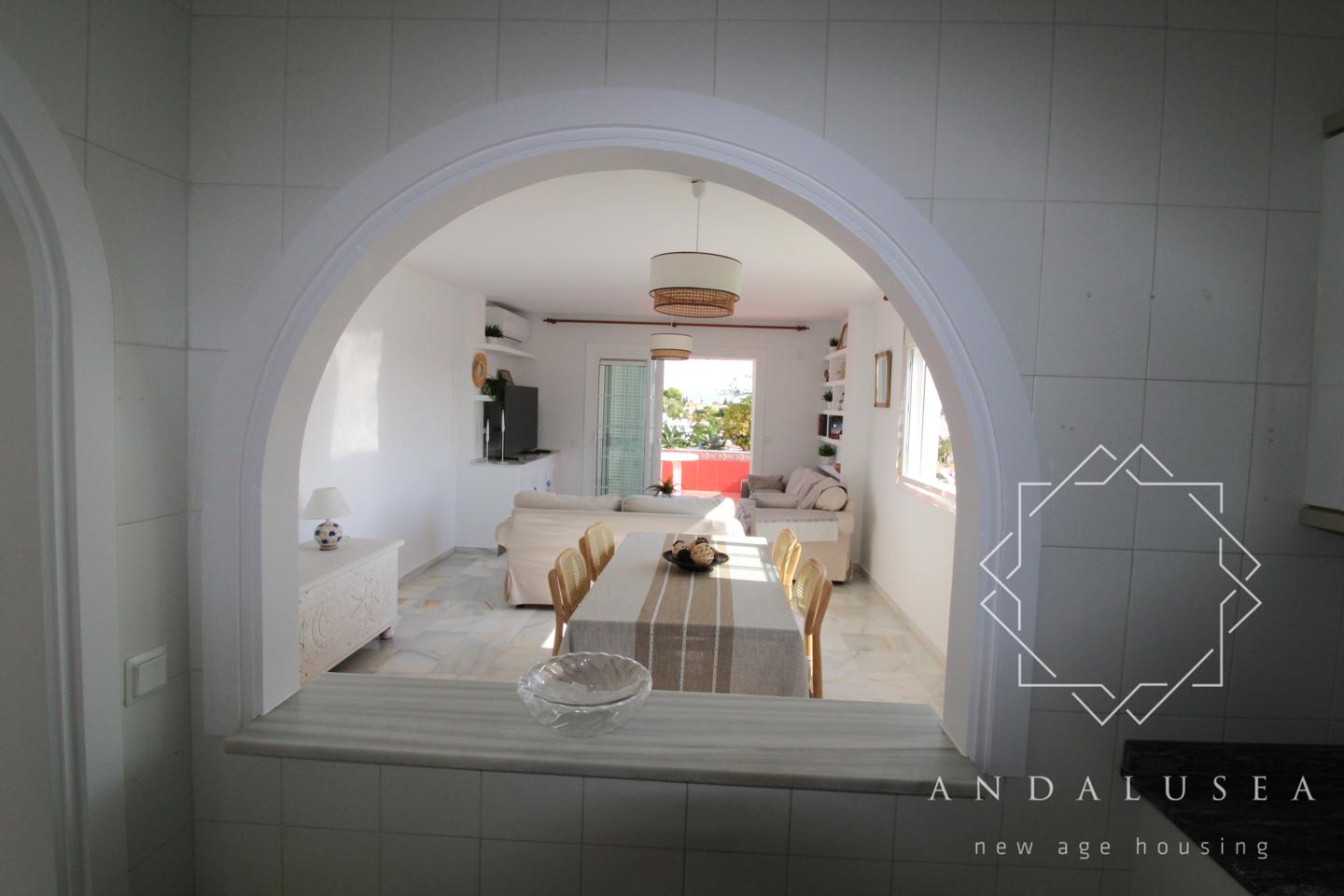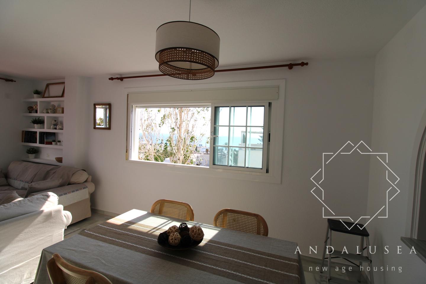 1.298 / 5.000 Beautiful penthouse for rent, available from September to June. This gem is located in the sought-after Los Geranios development, on Mojácar beach. This home consists of two double bedrooms, both with wardrobes and very bright. The master bedroom has sea views. The bathroom has been completely renovated to a high standard. From the living-dining room, we access a 20m terrace with beautiful sea views. Several improvements have been made to the apartment, and the best feature is undoubtedly the large windows on the side, which provide unparalleled light. A parking space is also available for rent. The common areas are accessed via stairs, along with a swimming pool and well-maintained gardens in a quiet neighborhood. The neighboring towns of Garrucha, Vera Playa, Turre, and Los Gallardos are less than 10 minutes away by car, and Almería Airport is 45 minutes away. Mojácar has been named one of the most beautiful towns in Spain by the association of the same name, and is one of the most sought-after coastal destinations in Andalusia. Dreamy beaches, a unique year-round climate, extraordinary golf courses, and an unbeatable selection of water sports, gastronomy, and nightlife.